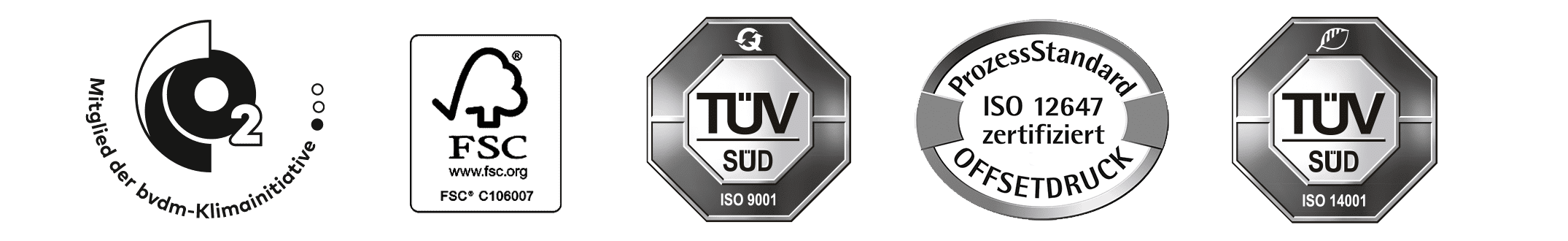 Mitglied der bvdm-Klimainitiative, Prozess Standard Offsetdruck, FSC®, Qualitätsmanagement und Umweltmanagement